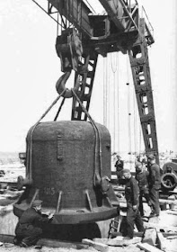 tarea de clavar postes que sostuvieran la escollera.Las rocas y maderos